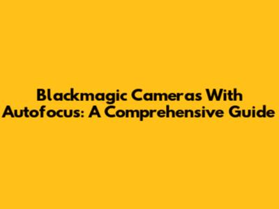 Blackmagic Cameras With Autofocus: A Comprehensive Guide