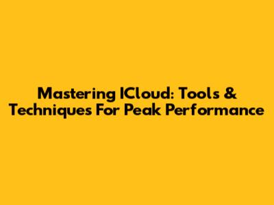 Mastering ICloud: Tools & Techniques For Peak Performance