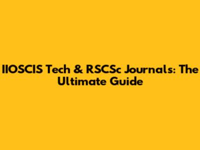 IIOSCIS Tech & RSCSc Journals: The Ultimate Guide