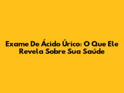 Exame De Ácido Úrico: O Que Ele Revela Sobre Sua Saúde