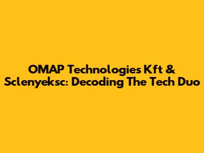 OMAP Technologies Kft & Sclenyeksc: Decoding The Tech Duo