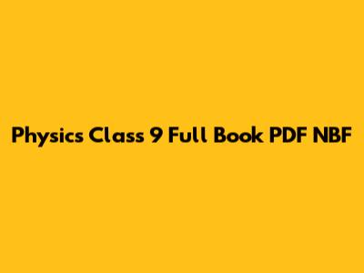 Physics Class 9 PDF: NBF Textbook Download