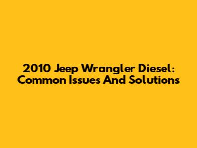 2010 Jeep Wrangler Diesel: Common Issues And Solutions