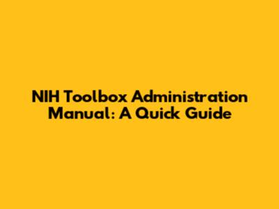 NIH Toolbox Administration Manual: A Quick Guide