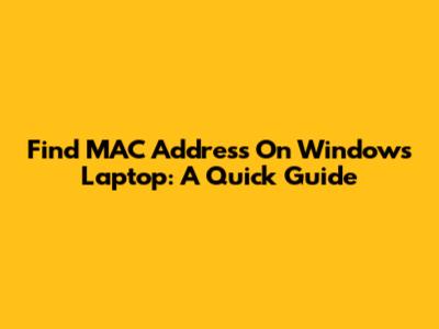 Find MAC Address On Windows Laptop: A Quick Guide