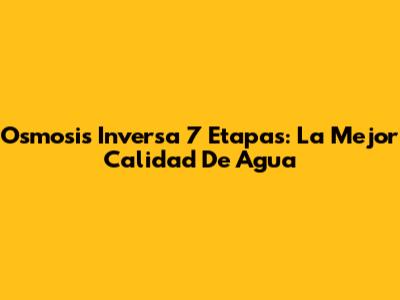 Osmosis Inversa 7 Etapas: La Mejor Calidad De Agua