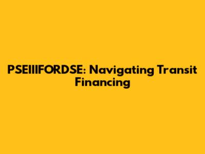 PSEIIIFORDSE: Navigating Transit Financing