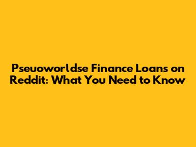 Pseuoworldse Finance Loans On Reddit: What You Need To Know
