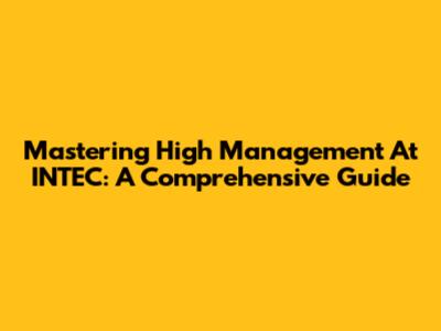 Mastering High Management At INTEC: A Comprehensive Guide