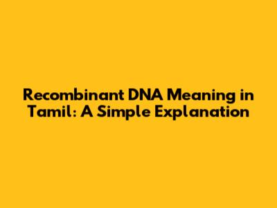 Hey guys! Ever heard of recombinant DNA? It sounds super sciency, right? Well, it is! But don't worry, we're gonna break it down and understand the recombinant DNA meaning in Tamil. Think of it like this: it's like molecular Lego! You take different pieces of DNA and stick them together to create something new. This is super important in biology and medicine, so let's get into it. We'll explore what it is, how it works, and why it's a big deal. The core recombinant DNA meaning lies in its ability to combine genetic material from different sources, creating new combinations of genes. This process has revolutionized many fields.