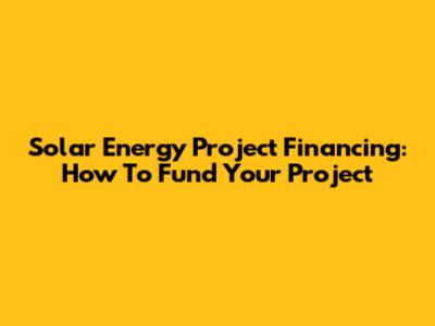 Solar Energy Project Financing: How To Fund Your Project