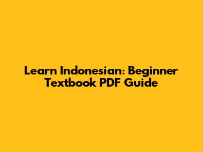 Learn Indonesian: Beginner Textbook PDF Guide