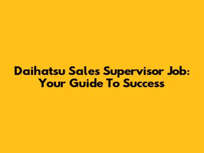 Daihatsu Sales Supervisor Job: Your Guide To Success