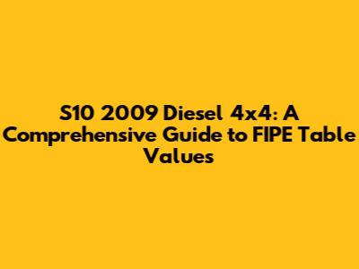Hey there, truck enthusiasts! Ever wondered about the S10 2009 Diesel 4x4 Tabela FIPE and what it means for your beloved pickup? Well, you've come to the right place! This article is your go-to resource for understanding the FIPE table, its significance, and how it relates to the value of your 2009 S10 diesel 4x4. We'll dive deep into the factors influencing these values, provide tips for assessing your truck's worth, and offer insights to help you navigate the used car market with confidence. So, buckle up, because we're about to embark on a journey through the world of truck valuations!