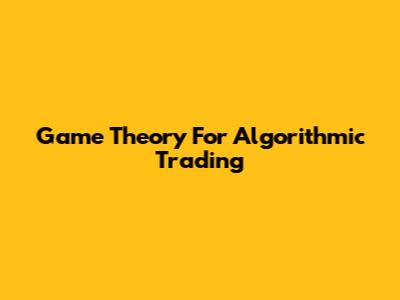 Game Theory For Algorithmic Trading