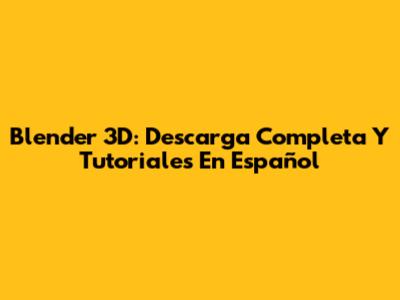 Blender 3D: Descarga Completa Y Tutoriales En Español