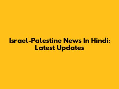 Israel-Palestine News In Hindi: Latest Updates