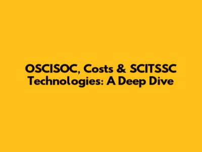 OSCISOC, Costs & SCITSSC Technologies: A Deep Dive