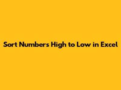 Sort Numbers High To Low In Excel