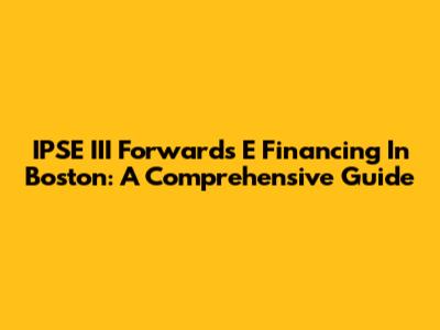 IPSE III Forwards E Financing In Boston: A Comprehensive Guide