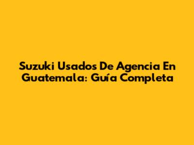 Suzuki Usados De Agencia En Guatemala: Guía Completa