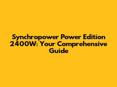 Understanding Your Synchropower Power Edition 2400W