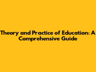 Theory And Practice Of Education: A Comprehensive Guide
