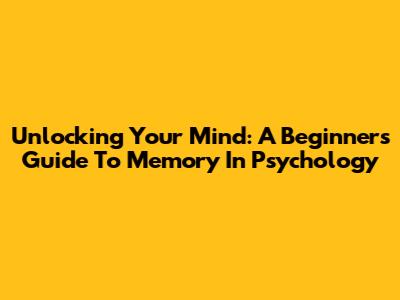Unlocking Your Mind: A Beginner's Guide To Memory In Psychology