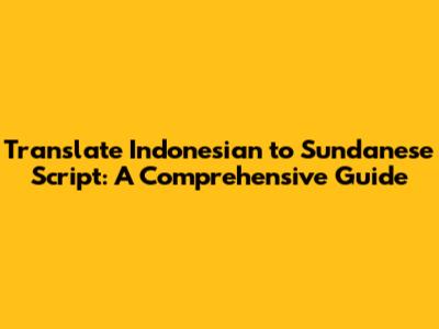 Have you ever wondered how to translate Indonesian into the Sundanese script? Well, you're in the right place! This comprehensive guide will walk you through everything you need to know, from understanding the basics of both languages to using tools and resources that can help you with the translation process. Let's dive in, guys!