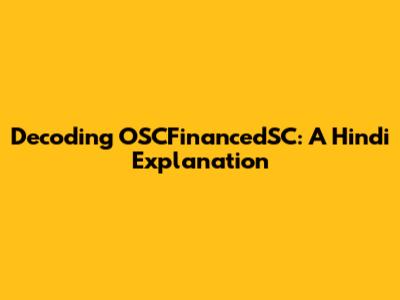 Understanding OSCFinancedSC: A Hindi Guide