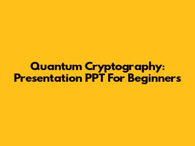 Quantum Cryptography: Presentation PPT For Beginners