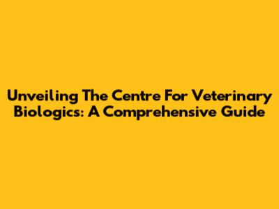 Unveiling The Centre For Veterinary Biologics: A Comprehensive Guide