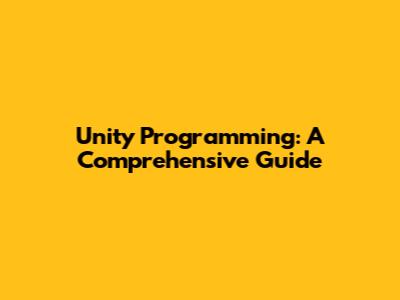 Unity Programming: A Comprehensive Guide