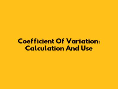 Coefficient Of Variation: Calculation And Use