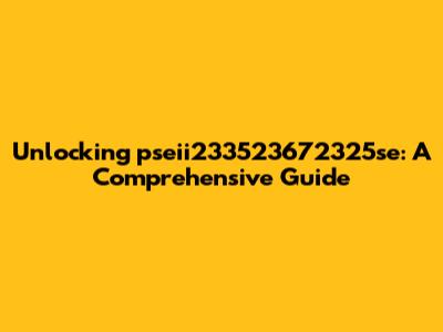 Unlocking Pseii233523672325se: A Comprehensive Guide