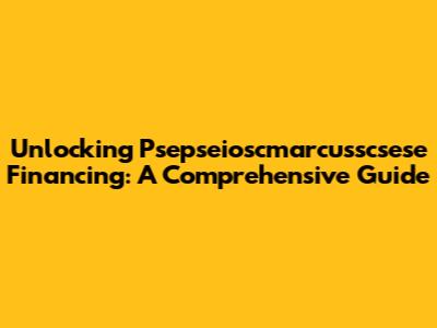 Unlocking Psepseioscmarcusscsese Financing: A Comprehensive Guide