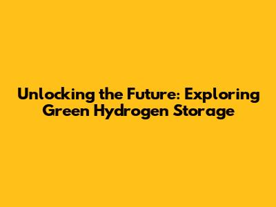 The Future of Green Hydrogen Storage: What’s Next?