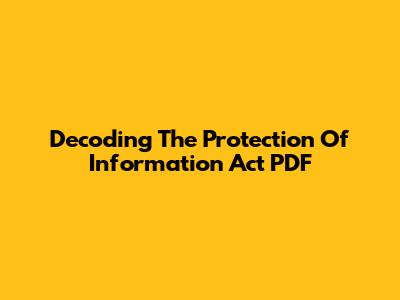 Decoding The Protection Of Information Act PDF