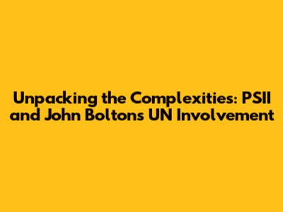 Hey guys! Let's dive into something pretty interesting today: the intersection of PSII, the enigmatic acronym, the influence of John Bolton, and his involvement with the United Nations. It's a topic that's got a lot of layers, and we're going to peel them back to see what's really going on. Trust me, it's more exciting than it sounds! We'll explore the various aspects, so buckle up, because there is a lot to unpack. We'll start with PSII. No, it's not the name of a super-secret spy organization or a new dance craze. While it might sound like something from a sci-fi movie, it actually refers to a specific protein complex, photosystem II, critical to the process of photosynthesis in plants, algae and cyanobacteria. Then, we will look into John Bolton, a very well-known figure, especially in the context of US foreign policy. He's been a player in international politics for a long time, often with a very particular viewpoint on the role and influence of the UN. And finally, let's look into the United Nations (UN) itself, the global organization dedicated to international cooperation, peace, and security. Sounds important, right? This article will dive deep into these concepts, so get ready to learn!