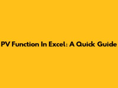 PV Function In Excel: A Quick Guide