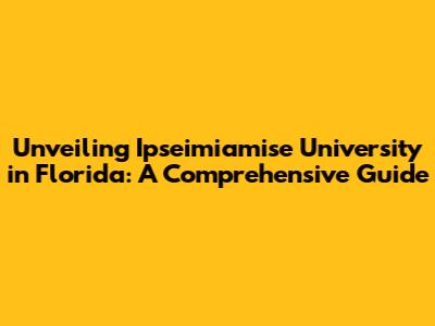 Hey everyone! Today, we're diving deep into Ipseimiamise University in Florida. Now, I know what you're thinking: "What in the world is Ipseimiamise?" Well, buckle up, because we're about to find out! This guide is designed to give you the lowdown on everything you need to know about this institution. We'll be exploring its programs, location, what makes it unique, and how it might be the right fit for you. Whether you're a prospective student, a curious observer, or just someone who loves learning new things, this article is for you. Get ready to have all your questions answered, and maybe even discover a new dream or two. Let's get started!