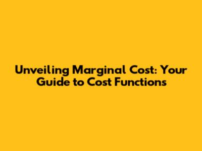 Unveiling Marginal Cost: Your Guide To Cost Functions