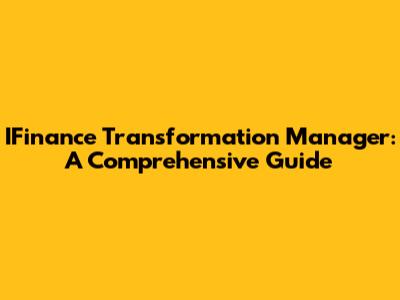 IFinance Transformation Manager: A Comprehensive Guide