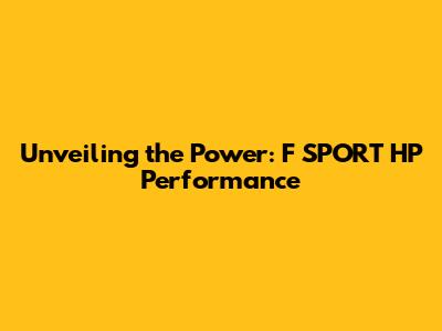 Unveiling The Power: F SPORT HP Performance