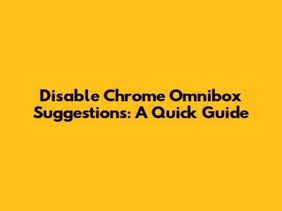 Disable Chrome Omnibox Suggestions: A Quick Guide