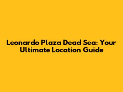 Leonardo Plaza Dead Sea: Your Ultimate Location Guide
