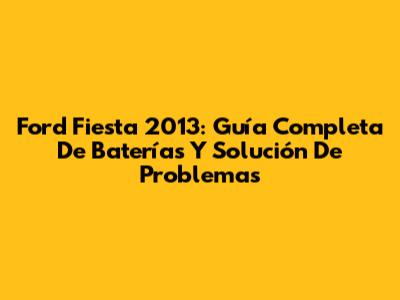 Ford Fiesta 2013: Guía Completa De Baterías Y Solución De Problemas