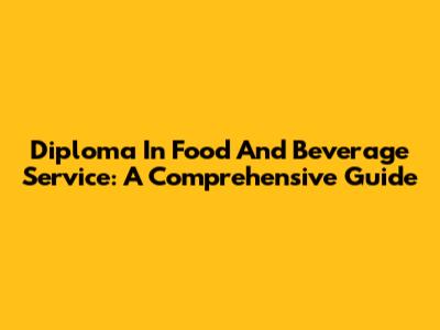 Diploma In Food And Beverage Service: A Comprehensive Guide