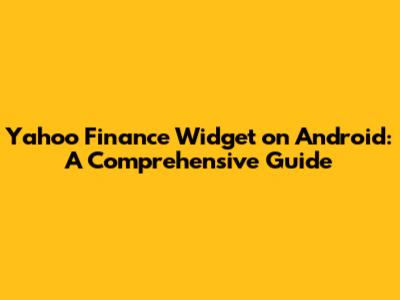 Yahoo Finance Widget On Android: A Comprehensive Guide