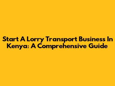 Start A Lorry Transport Business In Kenya: A Comprehensive Guide